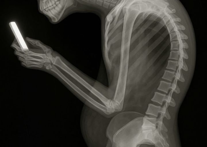 На цьому знімку ми буквально бачимо, як змінюється наше тіло, коли ми довго сидимо, нахилившись над телефоном.